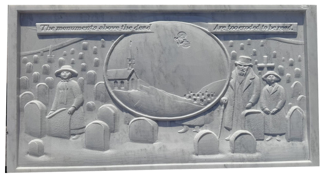 My interest is dogs. I just wanted to carve 3d dogs. But I have moved into acrylic and designing funerary items such as cemetery memorials. This is one that a client carved in granite and placed on the previously unmarked grave of Edward Gorey, a well known illustrator.