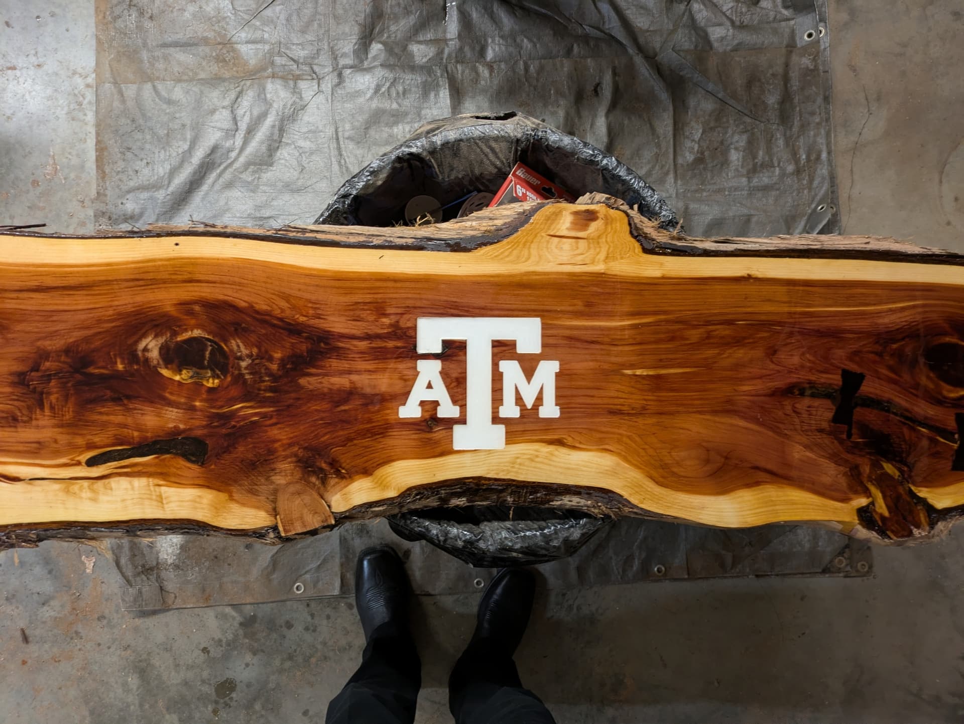 Here is a bench back that only the end edges were straight with natural slab edges so I figured where I wanted the carving centered and set that as my center. In CC I drew it as a rectangle just big enough for the 6.5" high text and used center.