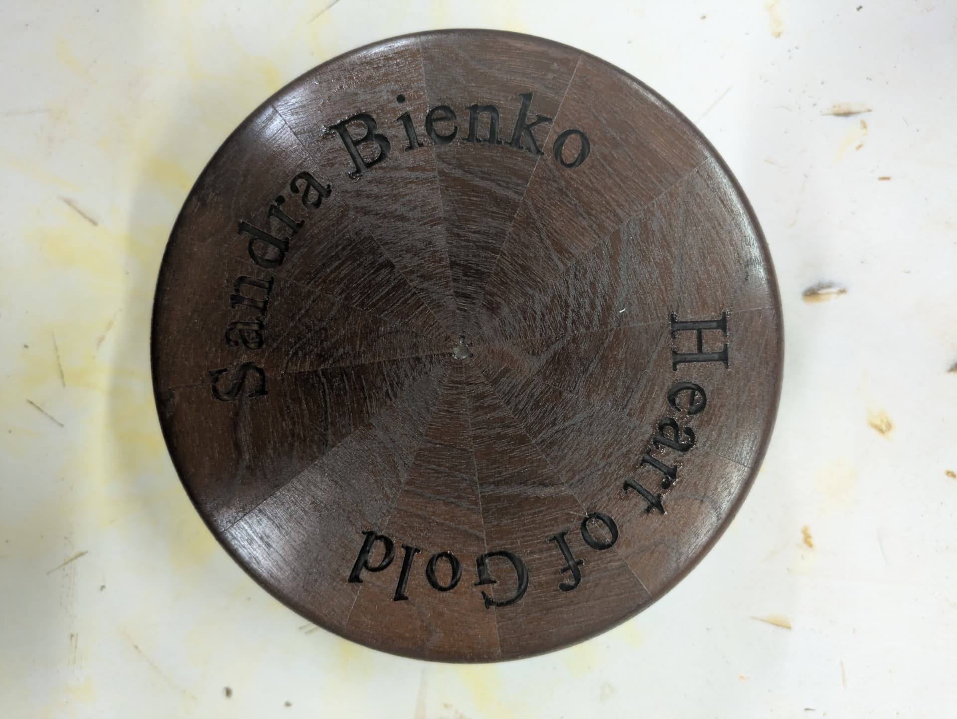 Engraving on round objects is best in the center because there is no lower right edge.