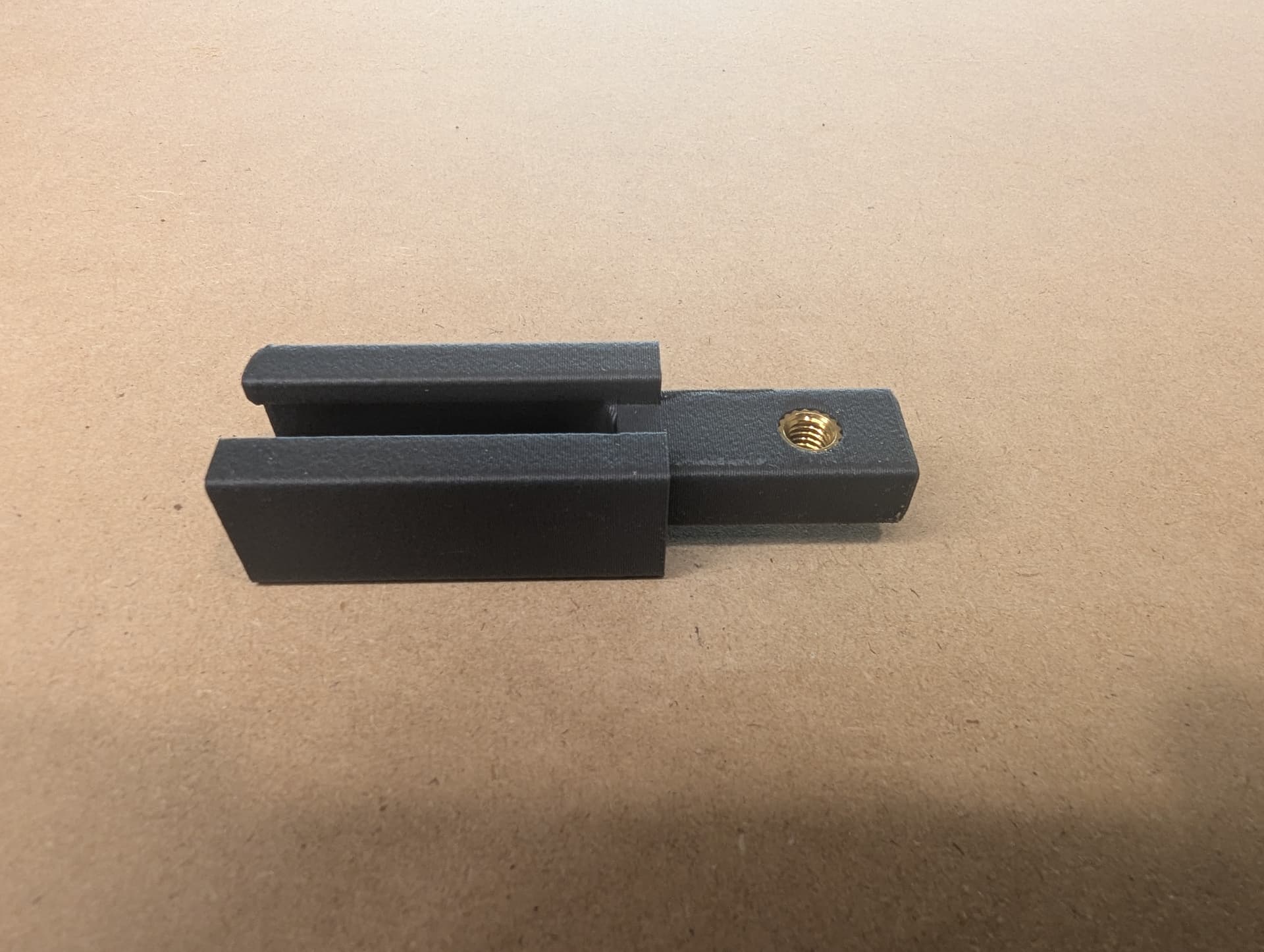 The extensions are printed from a carbon-fiber based filament that is quite stiff and strong. I added a hole for an M6 heat insert thinking I’d secure the extension in the track with a low-profile flathead hex screw, but it turns out the fit in the track is snug enough that whole arrangement is solid after tightening the clamp to the t-track nuts.