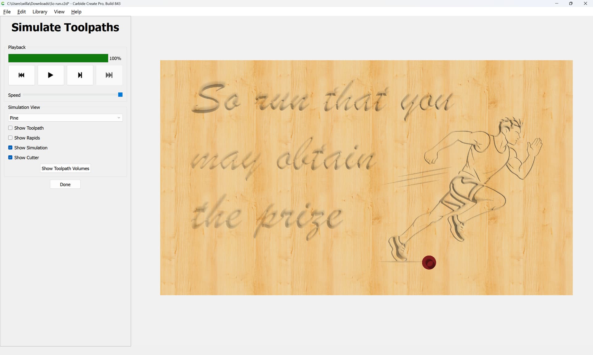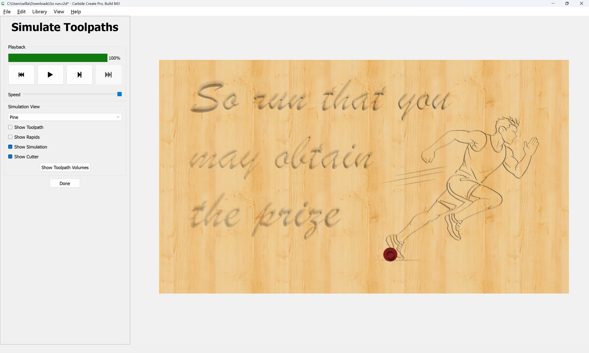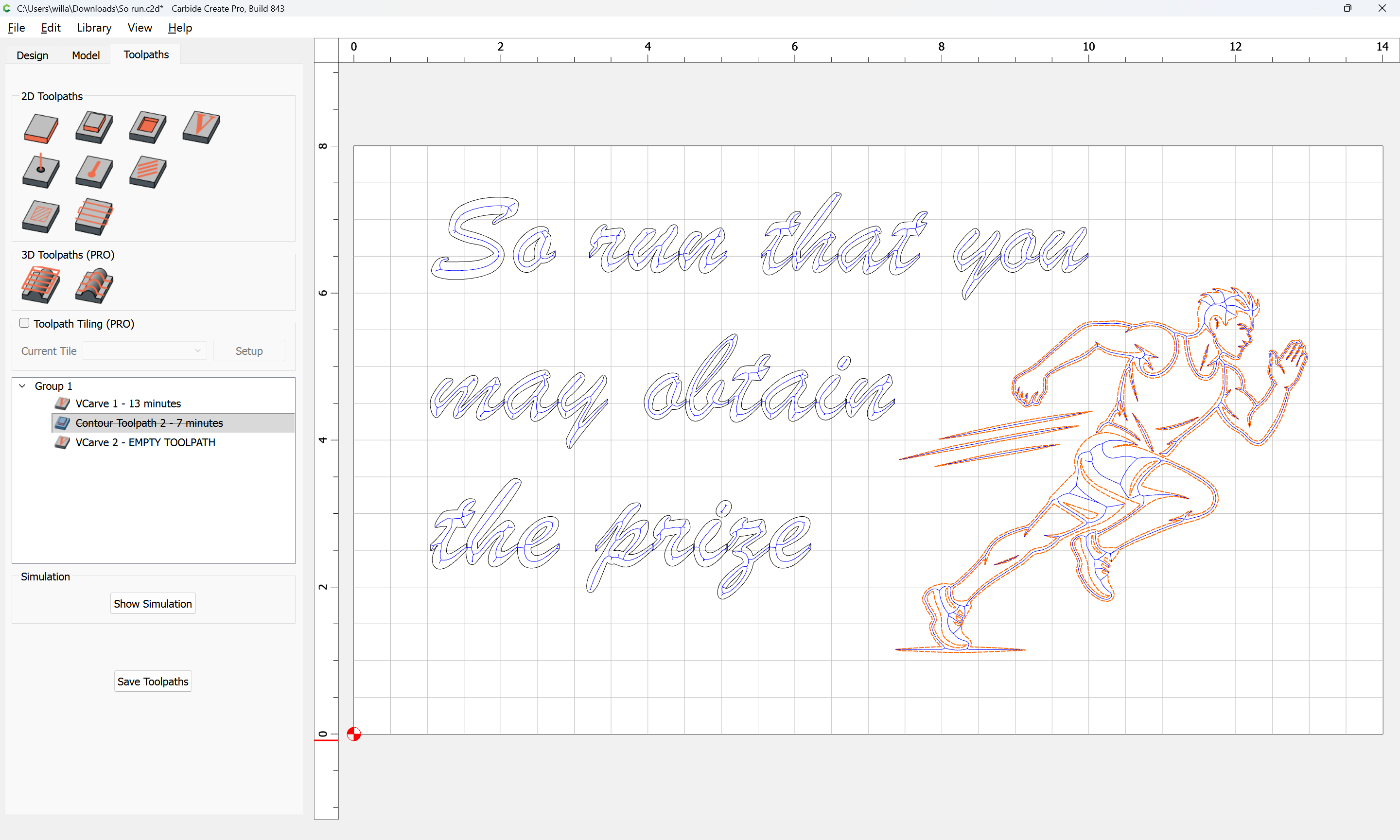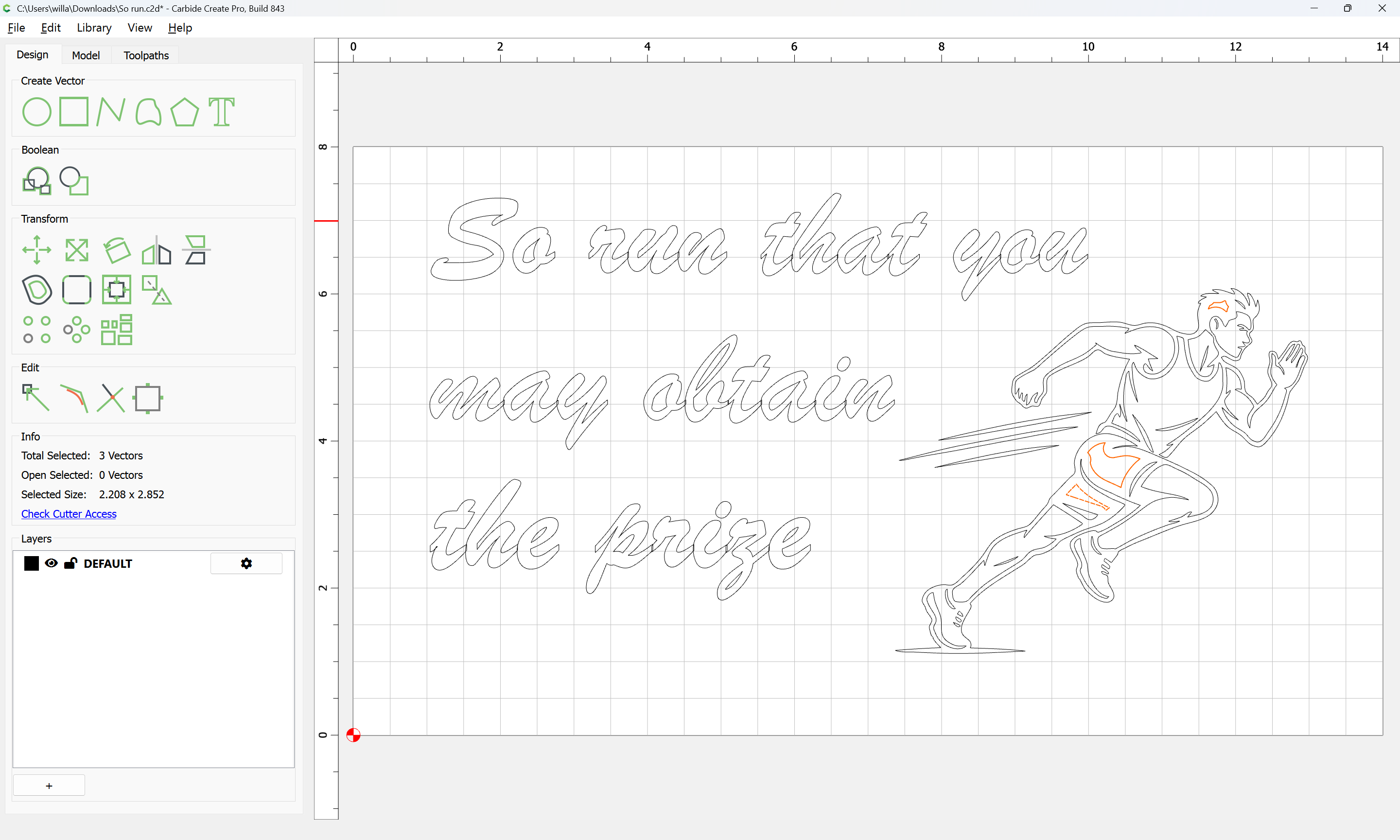 Here is my design. I had AI draw me a vector image for the athlete. How would you advise me to engrave that? Does it need cleaning up? Can I just contour with a Vee bit?