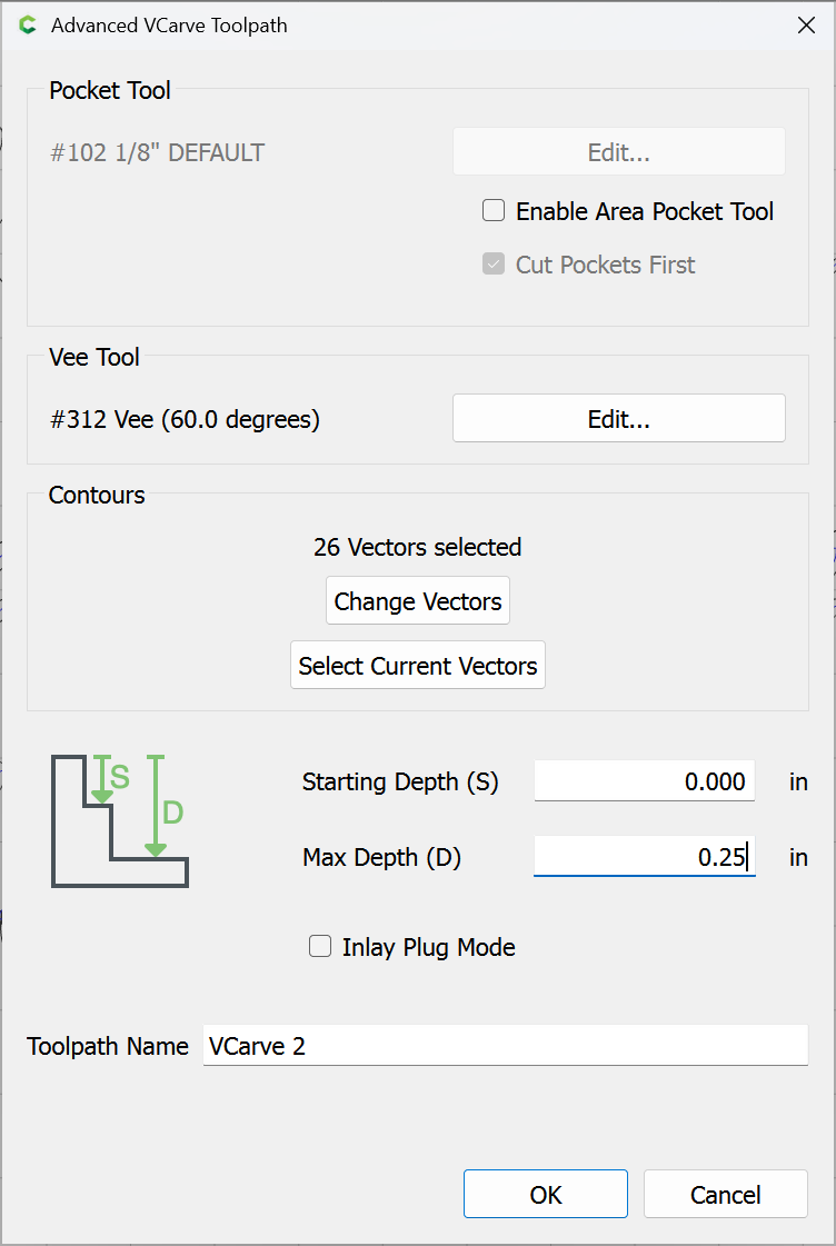 If the V-carving toolpath preview is not as you wish, please upload the file and a screengrab of it and explain in what way it does not suit.