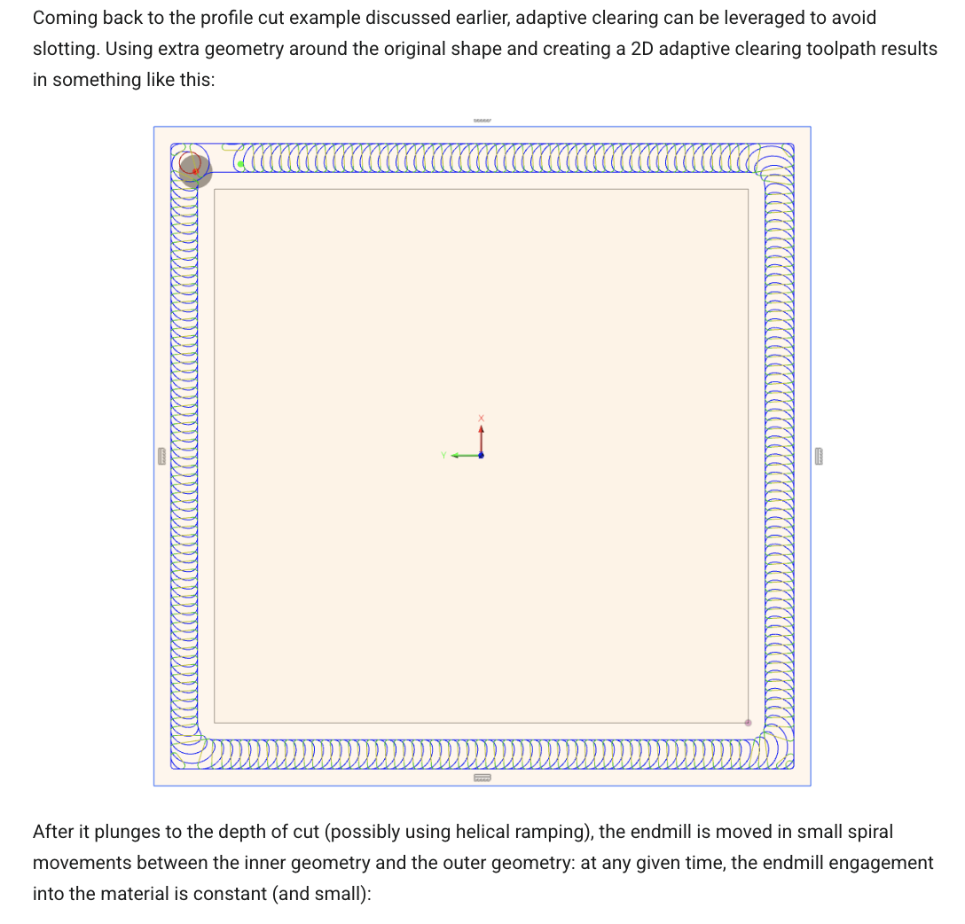 Although in that one they’re creating material outside of the piece they want to force adaptive to cut a slot. I could do that around the outside rectangle of my job as well as inside. In F360, that’s pretty easily done with an Offset.