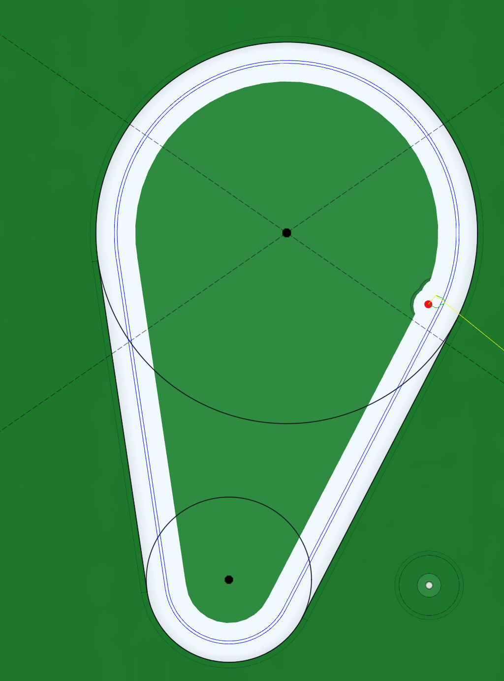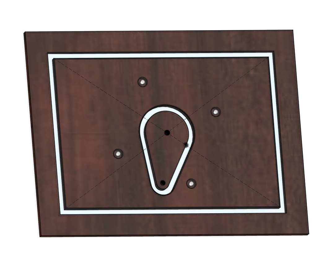 I’ve got a ¼" thick sheet of 6061 Aluminum that I’m using to support a DeWalt 620 router on a shop-made slab flattening sled. This router has a unique built-in dust collection (up through the plunge rod), which requires a egg-shape opening in the base. This is the best picture I could find on the web: