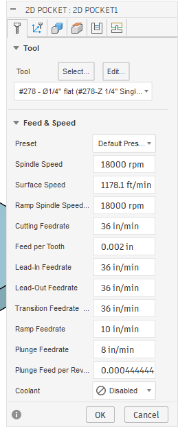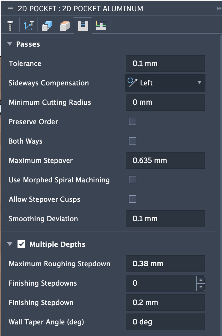 c. I used ramping in Carbide Create Pro (except when I forget) — I’ve also experimented w/ using “Stock to Leave” and taking a roughing pass, then making a finishing pass, as well as toggling climb vs. conventional, see: