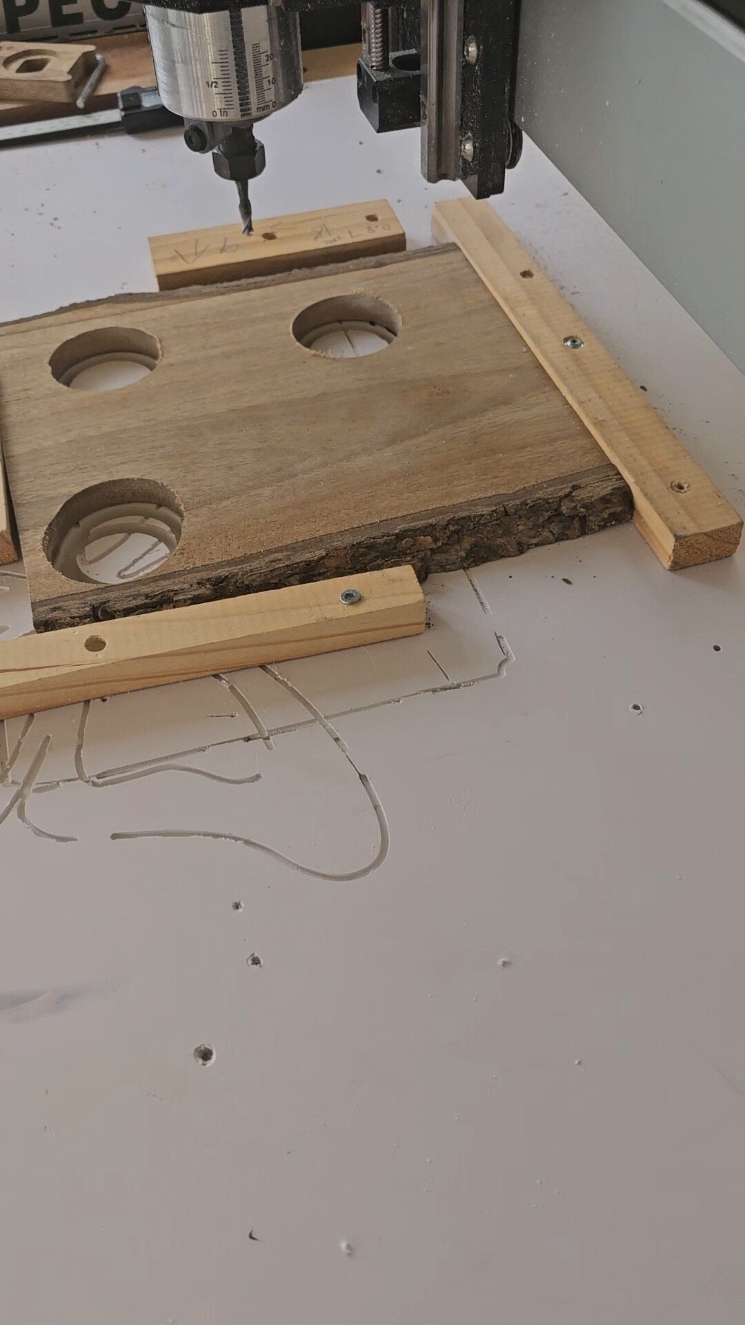 Every time one of you suggests or provides knowledge to others who seek help to be able to undertake better, they are blessings that are added to your life. That being said, I hope someone from this great forum can help me. My machine is the Shapeoko 4, the detail is that every time I put material in this case 9"x8" and 0.55" thick I want to remove a wheel as a perfect hole goes through my work material and I have made several I tried and changed the drill bit previously, set the #205 then change to the #201 both EndMills. I verified the cables and verified the belts and verified the screws, including the motors, and verified whether there was a need to tighten the screws inside or anything. verified in Z if the screw is broken. Everything looks correct and perfect. Thank you for the suggestions, blessings to everyone who reads and especially to those who contribute their knowledge